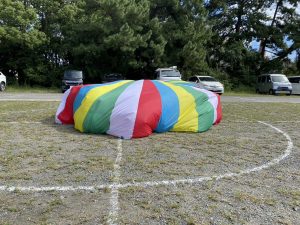 パラバルーンを膨らませたり、揺らしたり、たくさんの技を楽しみながら練習を行いました。演技曲「♪ダンスホール」にも親しみ、お部屋でもよく口ずさむ姿が見られました⭐