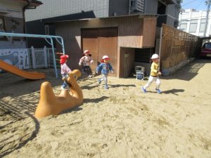 ④保育室でばなな鬼をした後、いざ園庭でばなな鬼スタート🍀