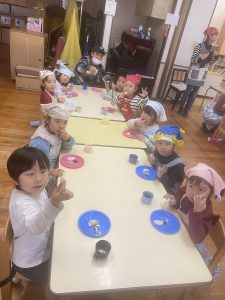 床に並べて、お友だち同士で見せ合いっこをする姿も見られ、楽しい時間となりました☺