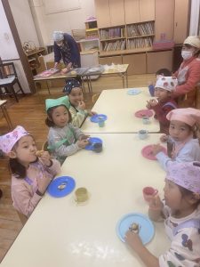 その後、保育室に戻り、たてわりのお弁当の席で美味しくお餅をいただきました😋💚