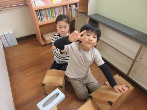 お部屋では、けん玉やこま回し、羽根つきなどの伝承あそびに触れています☀