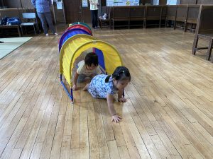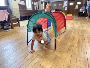 その後、ウレタン跳び箱からのジャンプやトンネルくぐりをしました👏