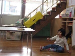 子どもたちは、保護者の組み立てた積木をどんどん壊していきました。しかし、最後の方には、上に重ねることもありました。保護者のマネをして、高く高く積むことに挑戦する子どももいました。