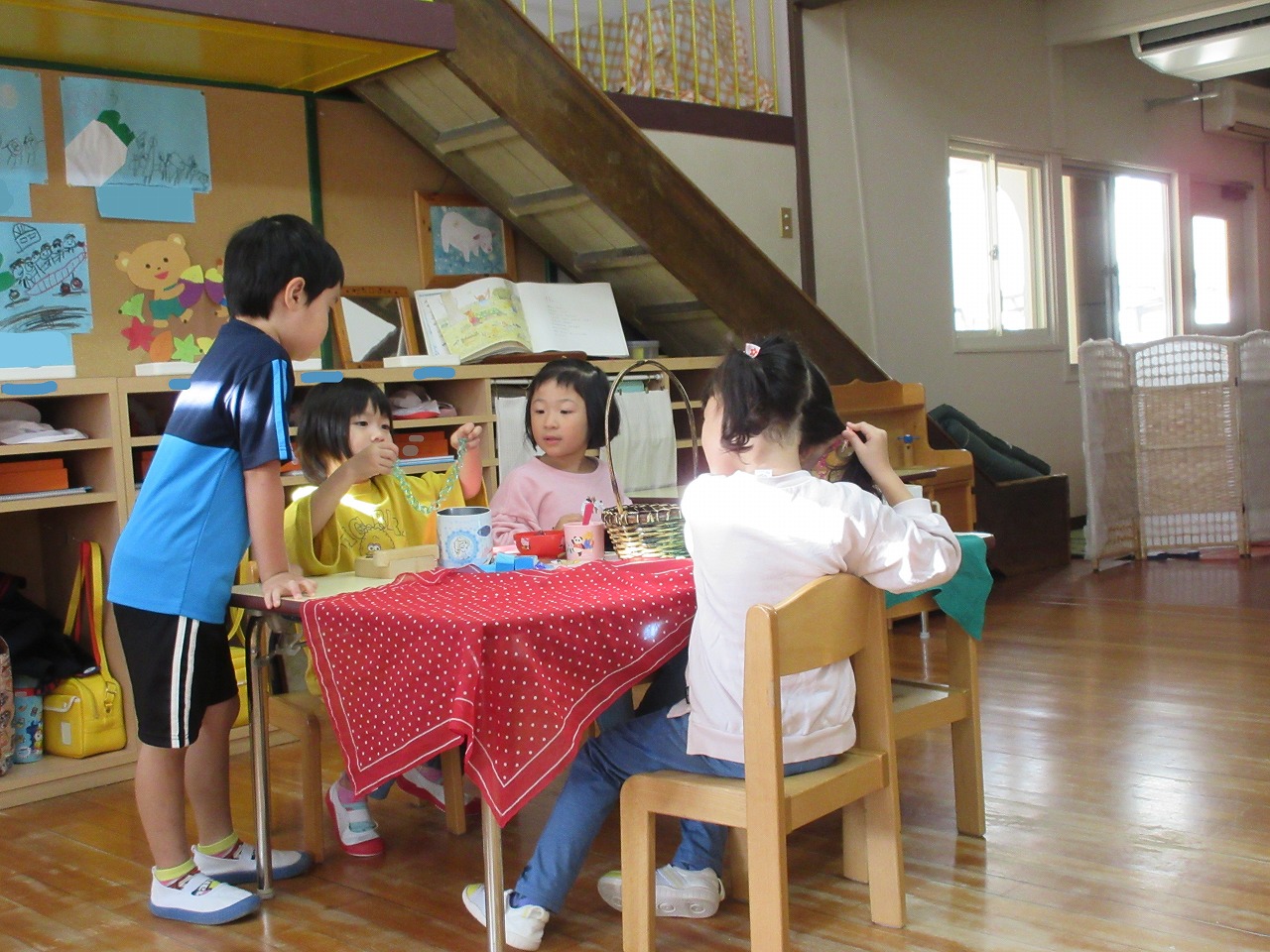 ⭐おままごとで使う野菜も「うんとこしょ、どっこいしょ」と、お部屋の畑から抜いています😊