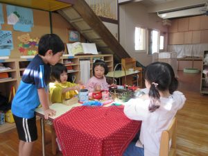 そして、何度も繰り返して劇ごっこを楽しんだ後、制作を行いました🎵