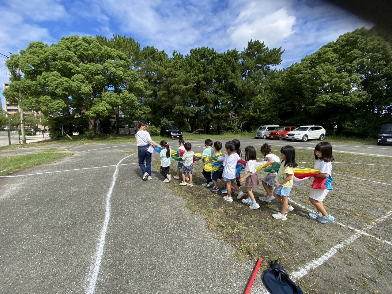 10/11(土)に、良いお天気の中で運動会を行いました☀この日を心待ちにしながら、みんなでたくさん練習を重ねてきました。開会礼拝、かけっこ、ダンス、親子競技、巨大パズルなど楽しいプログラムがたくさんある中で、年長ひかり組は「リレー」と「パラバルーン」にも挑戦しました😊