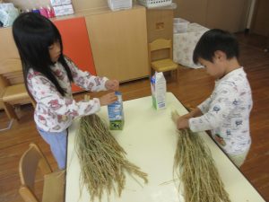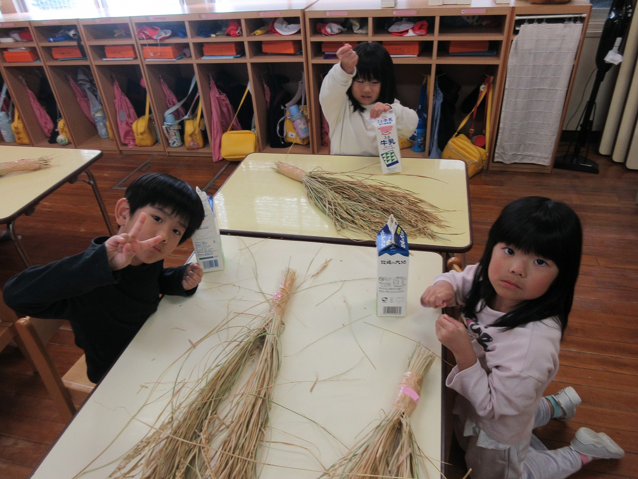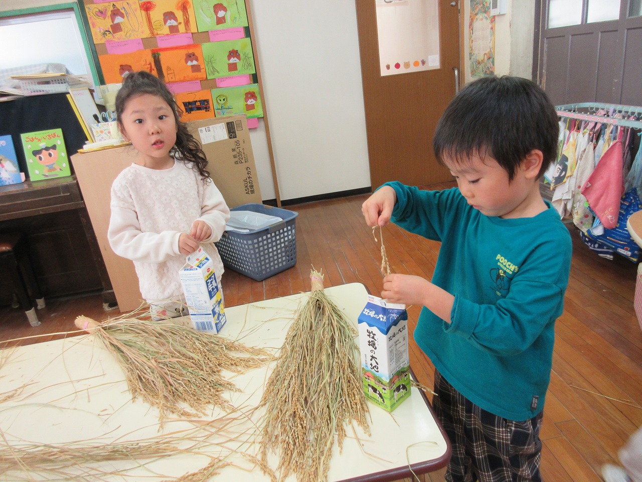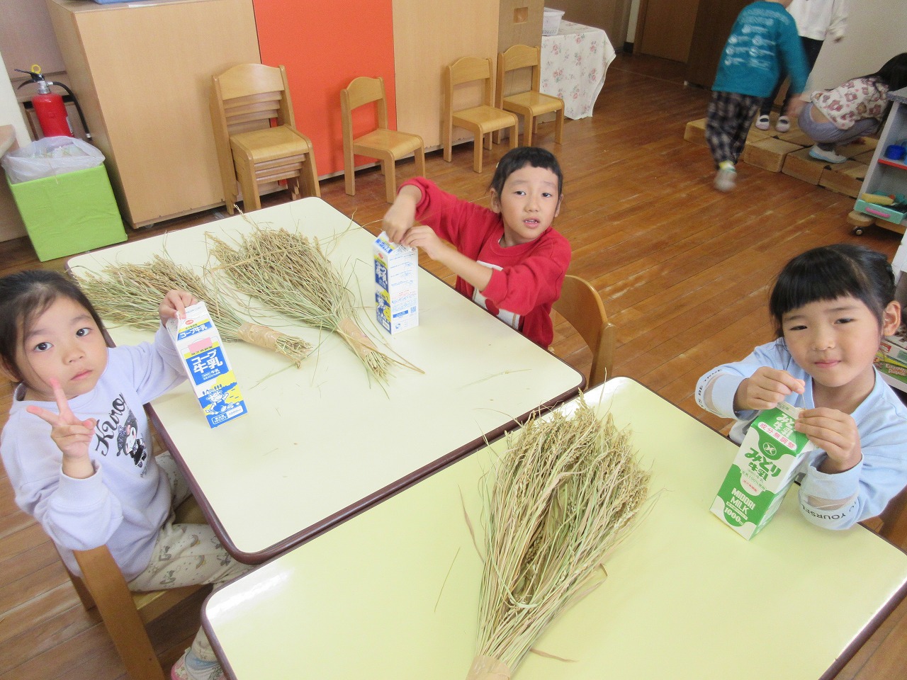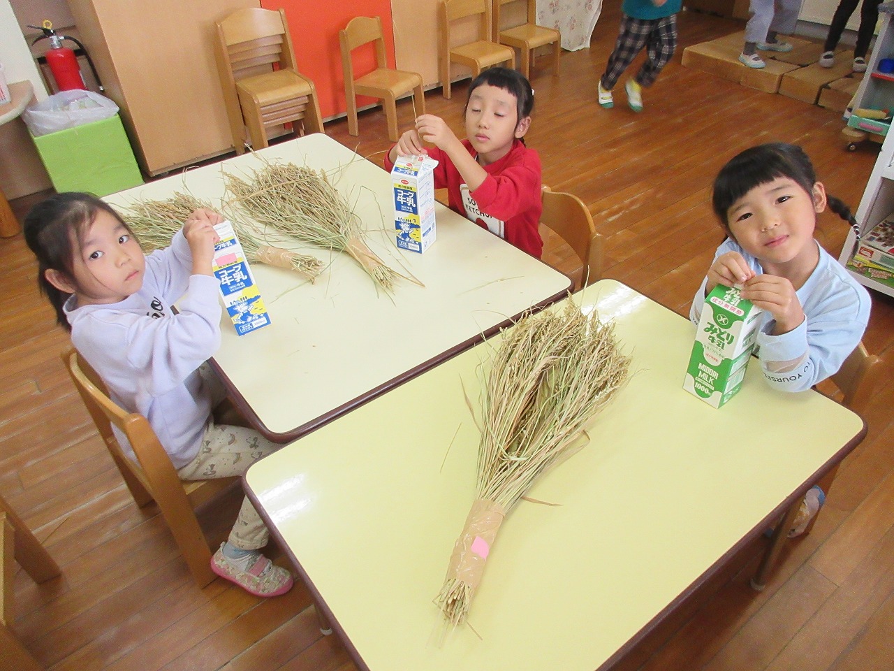 5月から始まったお米作り⭐苗植え、稲刈り、脱穀、もみすりと、子どもたちは最後まで意欲的に取り組んでいました😊