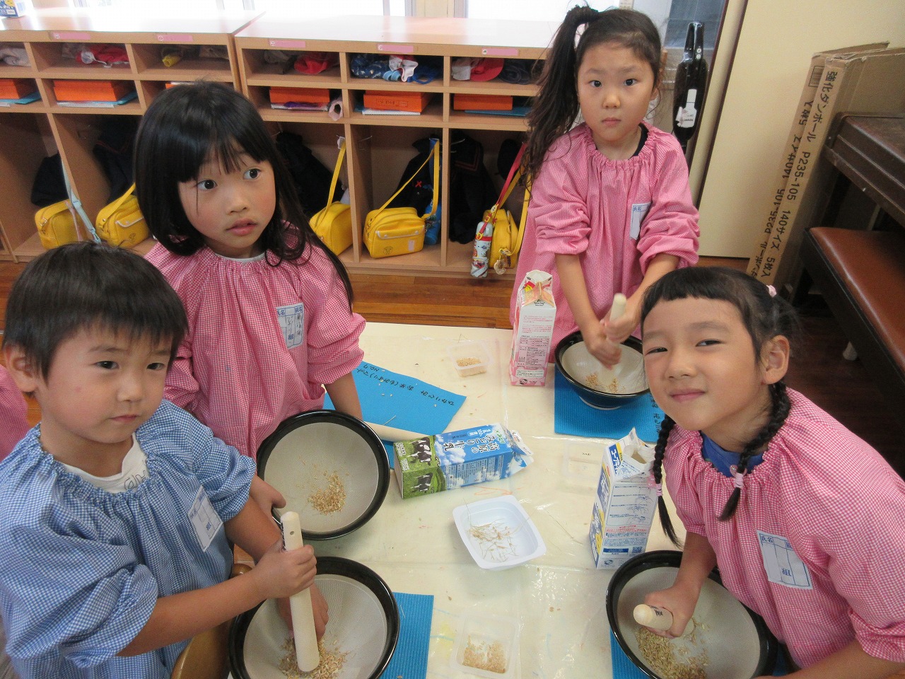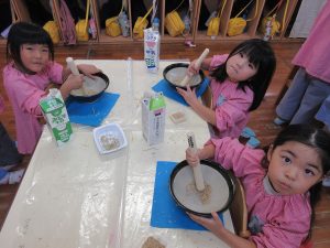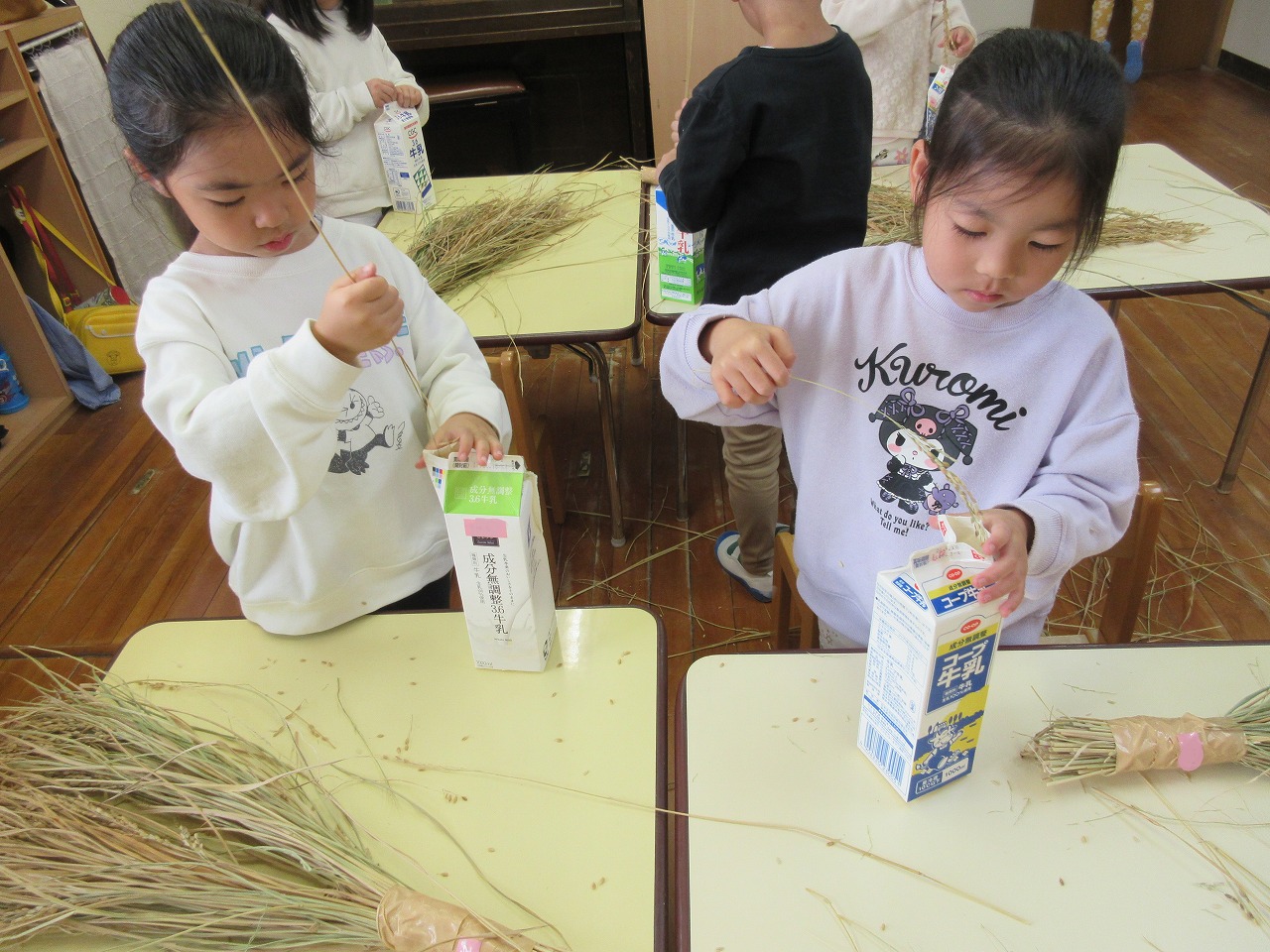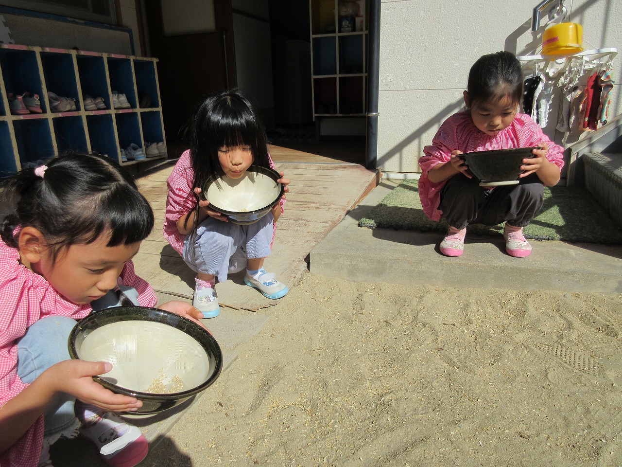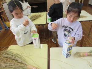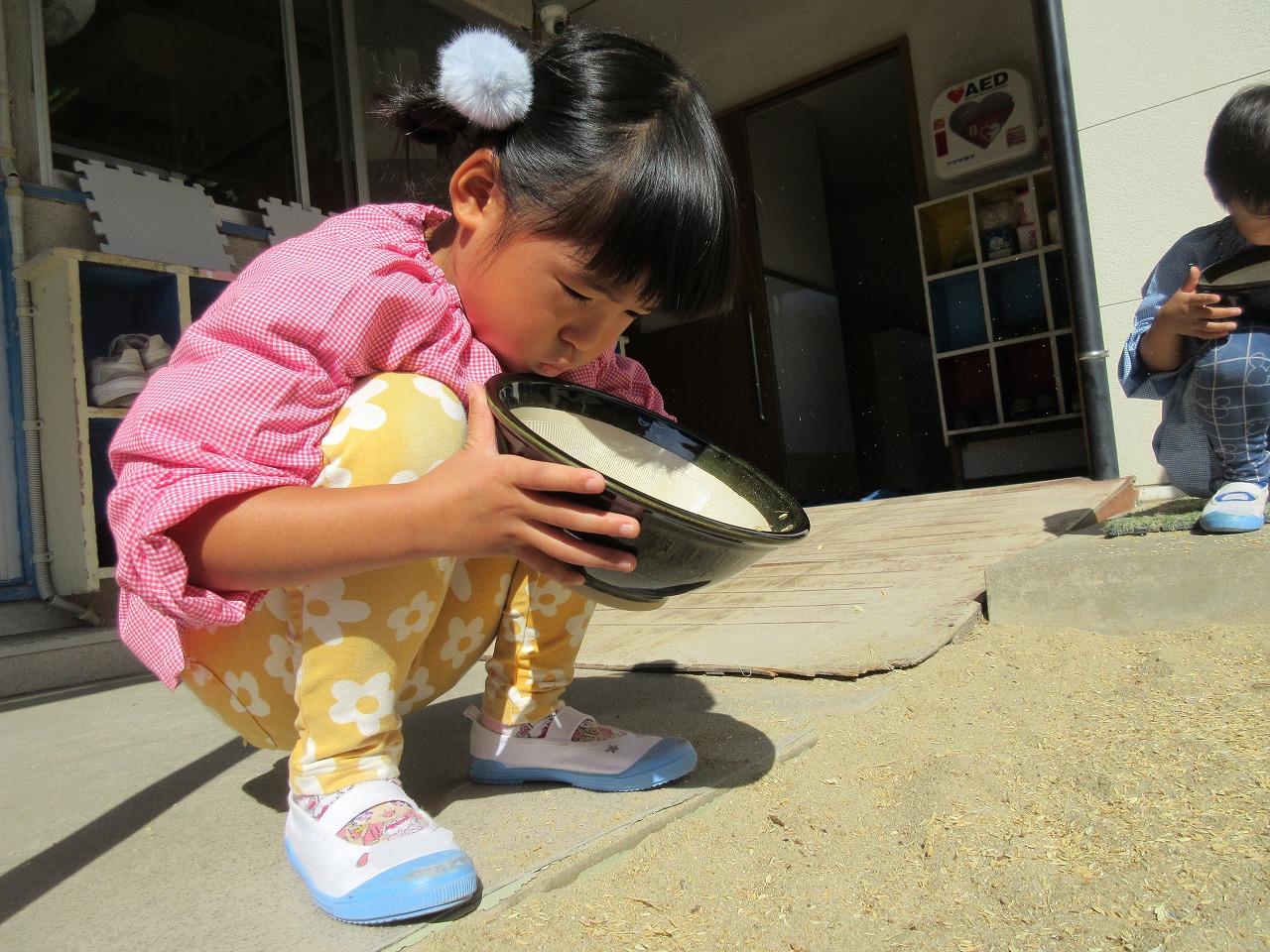 5月から始まったお米作り⭐苗植え、稲刈り、脱穀、もみすりと、子どもたちは最後まで意欲的に取り組んでいました😊