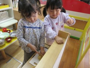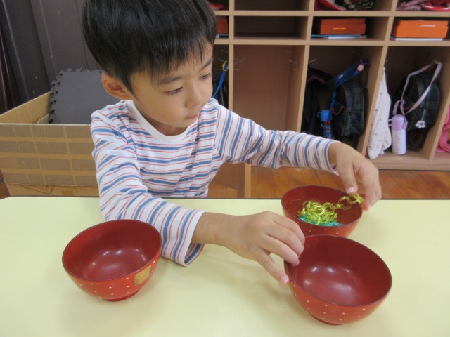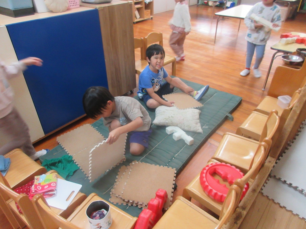 女の子たちが何かを作っているのを見て、男の子たちも興味が出てきたようです💭