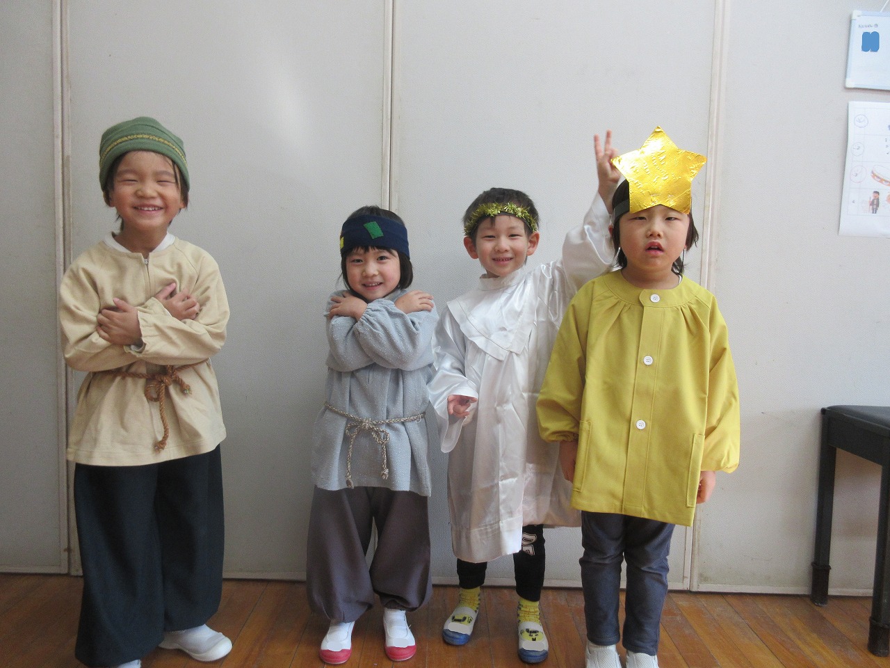 合奏では、タンブリンとトライアングルを、ページェントでは羊飼いと天使、星を担当しました😊