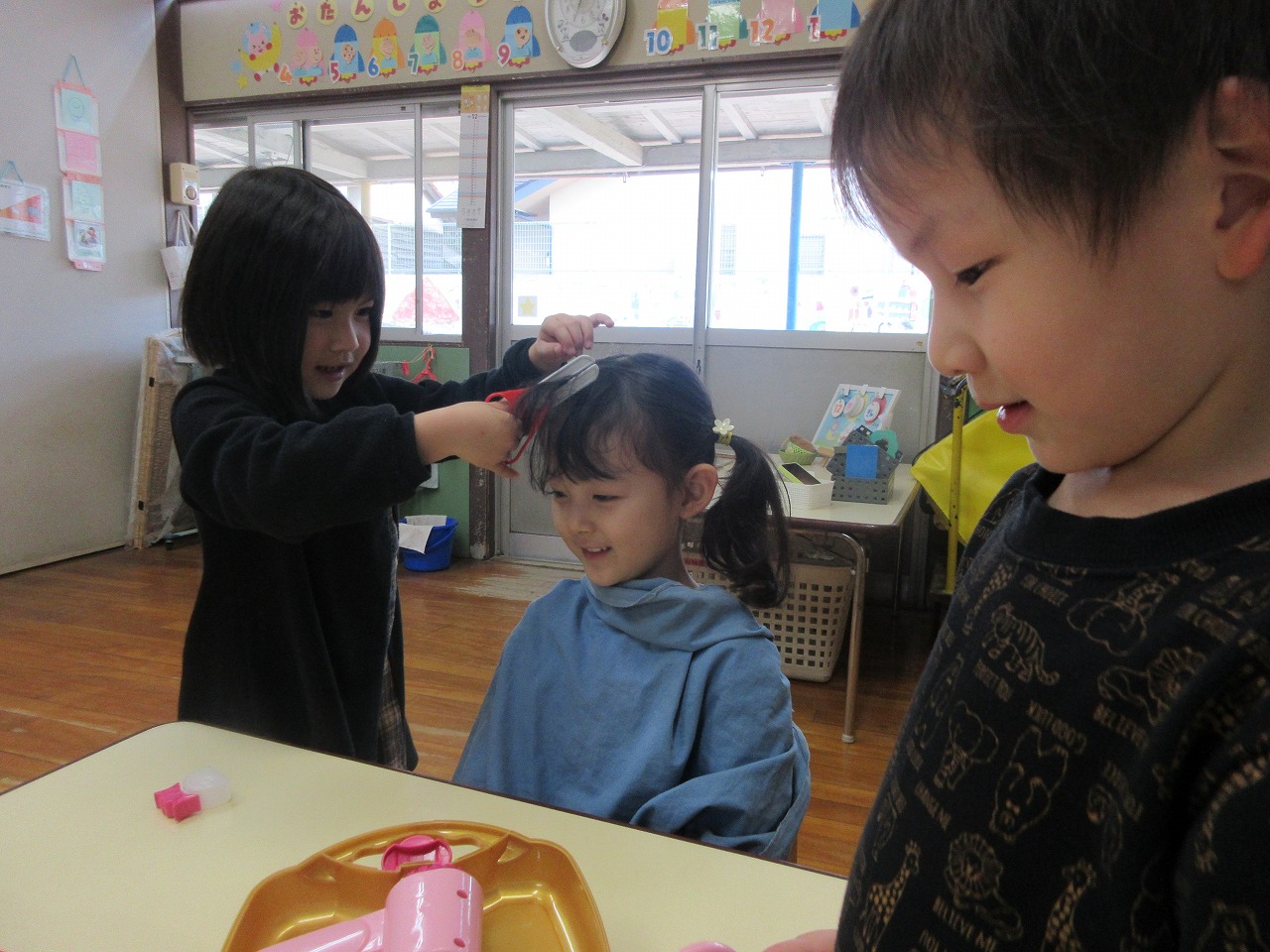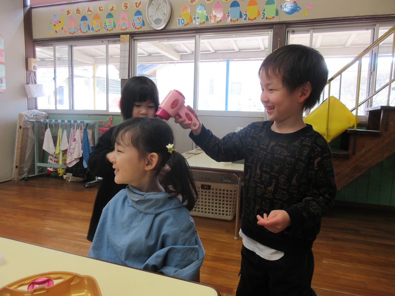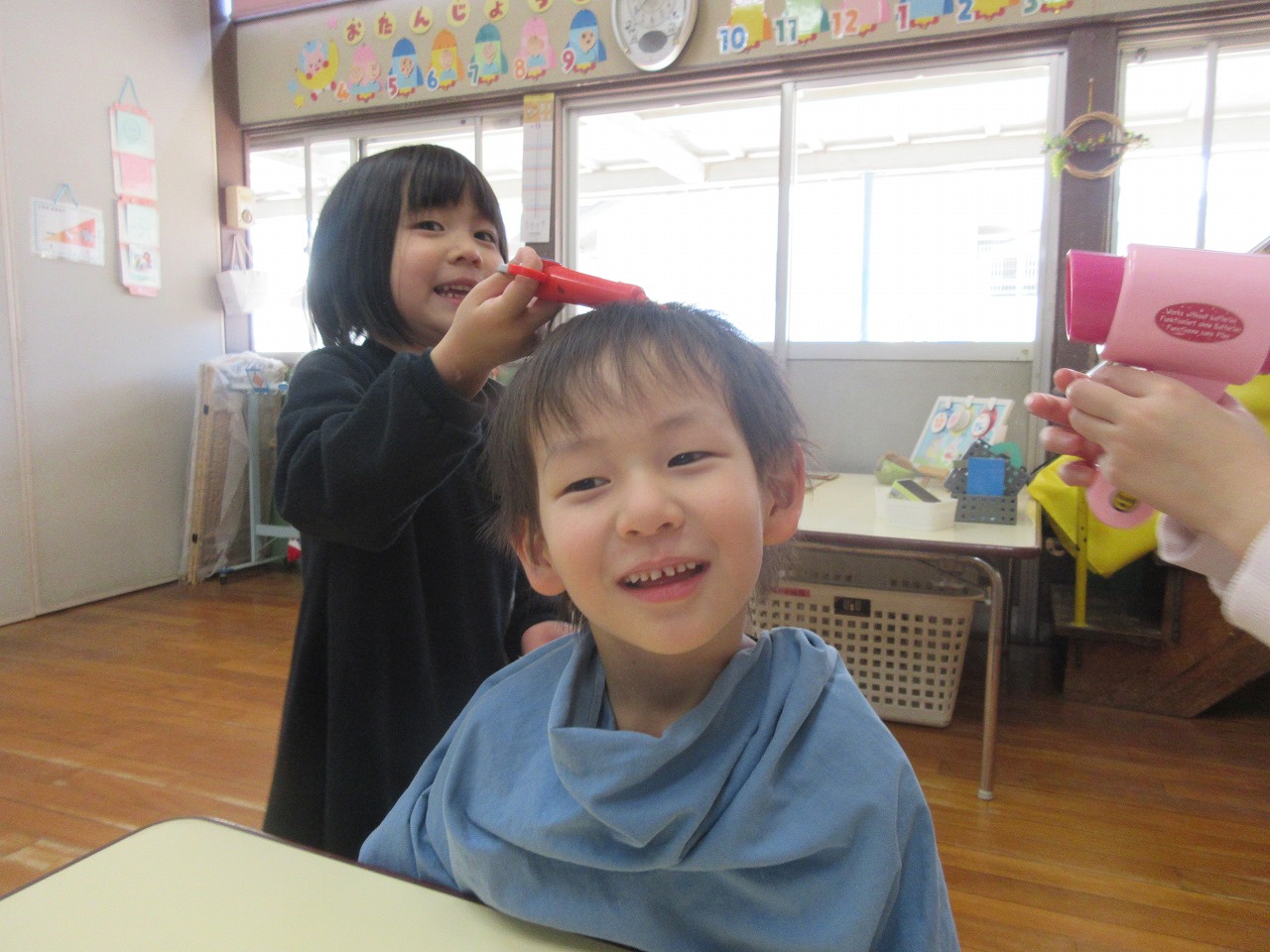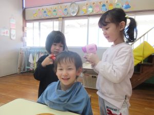 ドレッサーセットでは、美容院ごっこをしています💇髪を切ったり、お化粧したり・・・