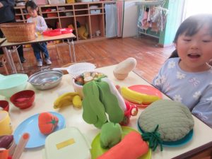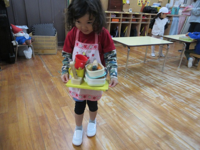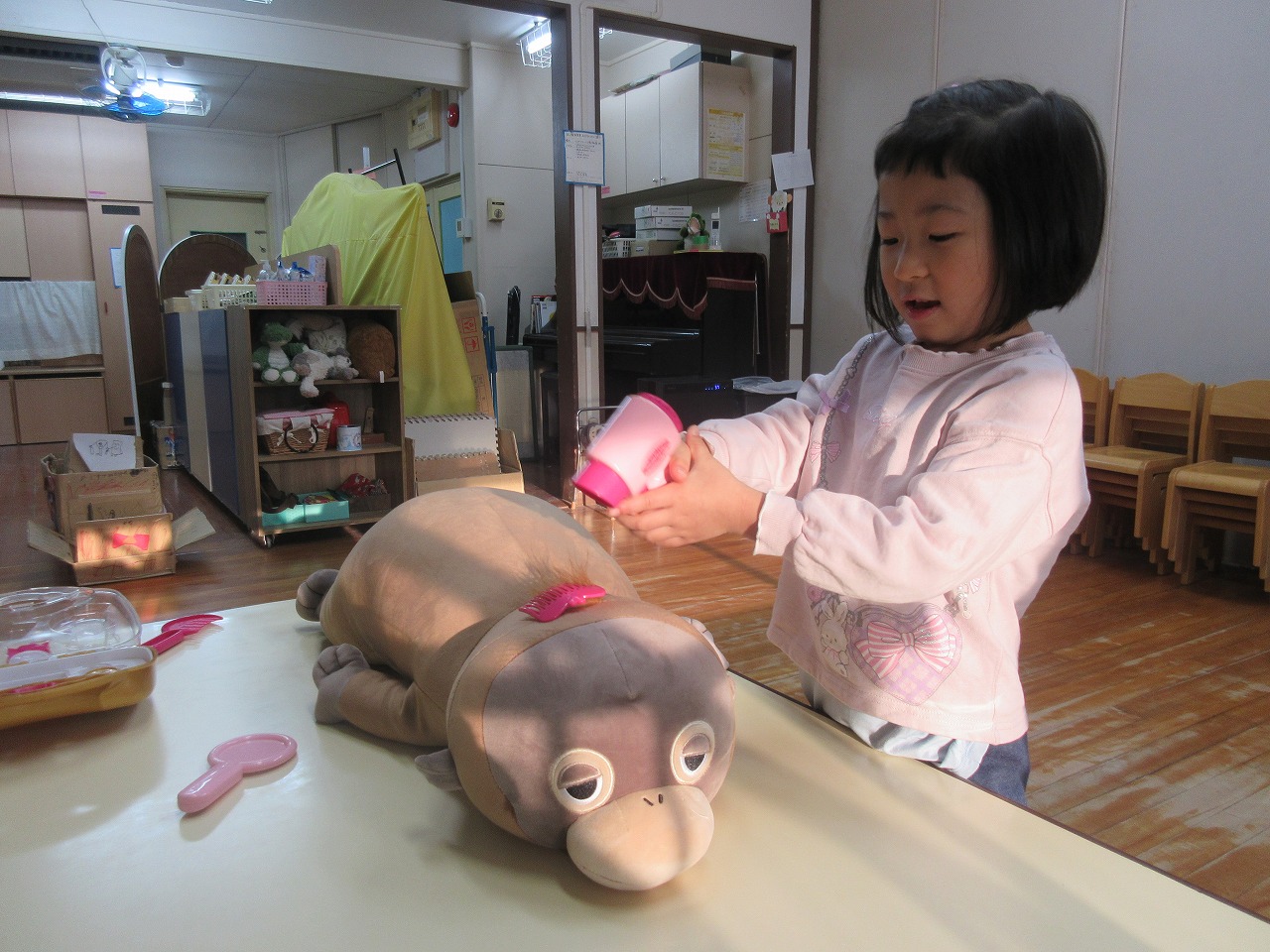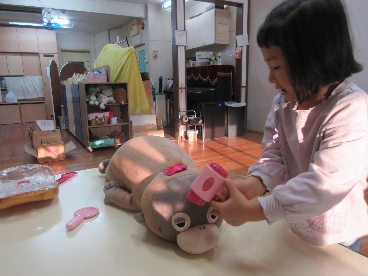 ドレッサーセットでは、美容院ごっこをしています💇髪を切ったり、お化粧したり・・・