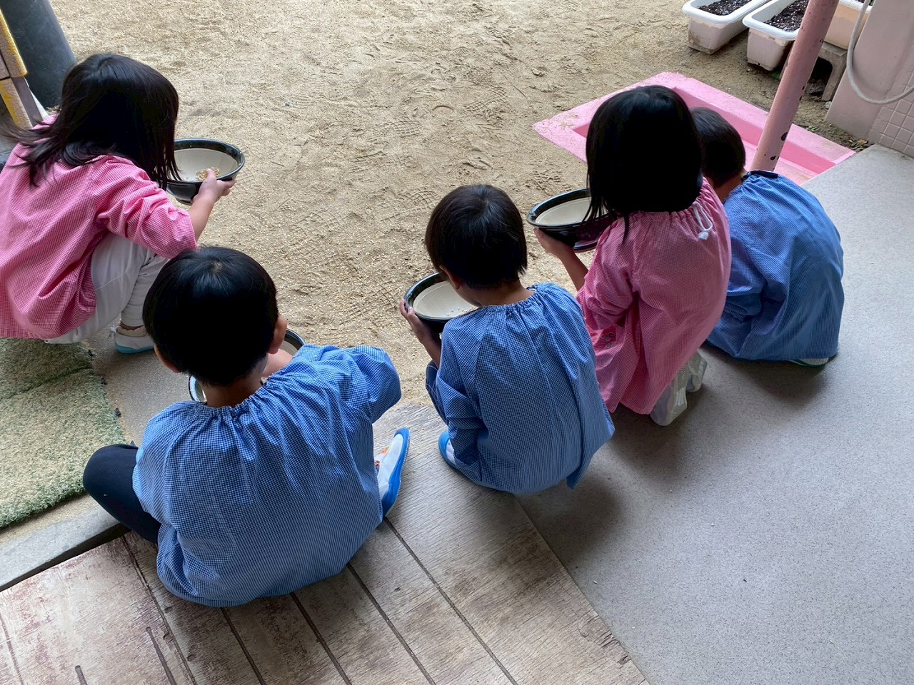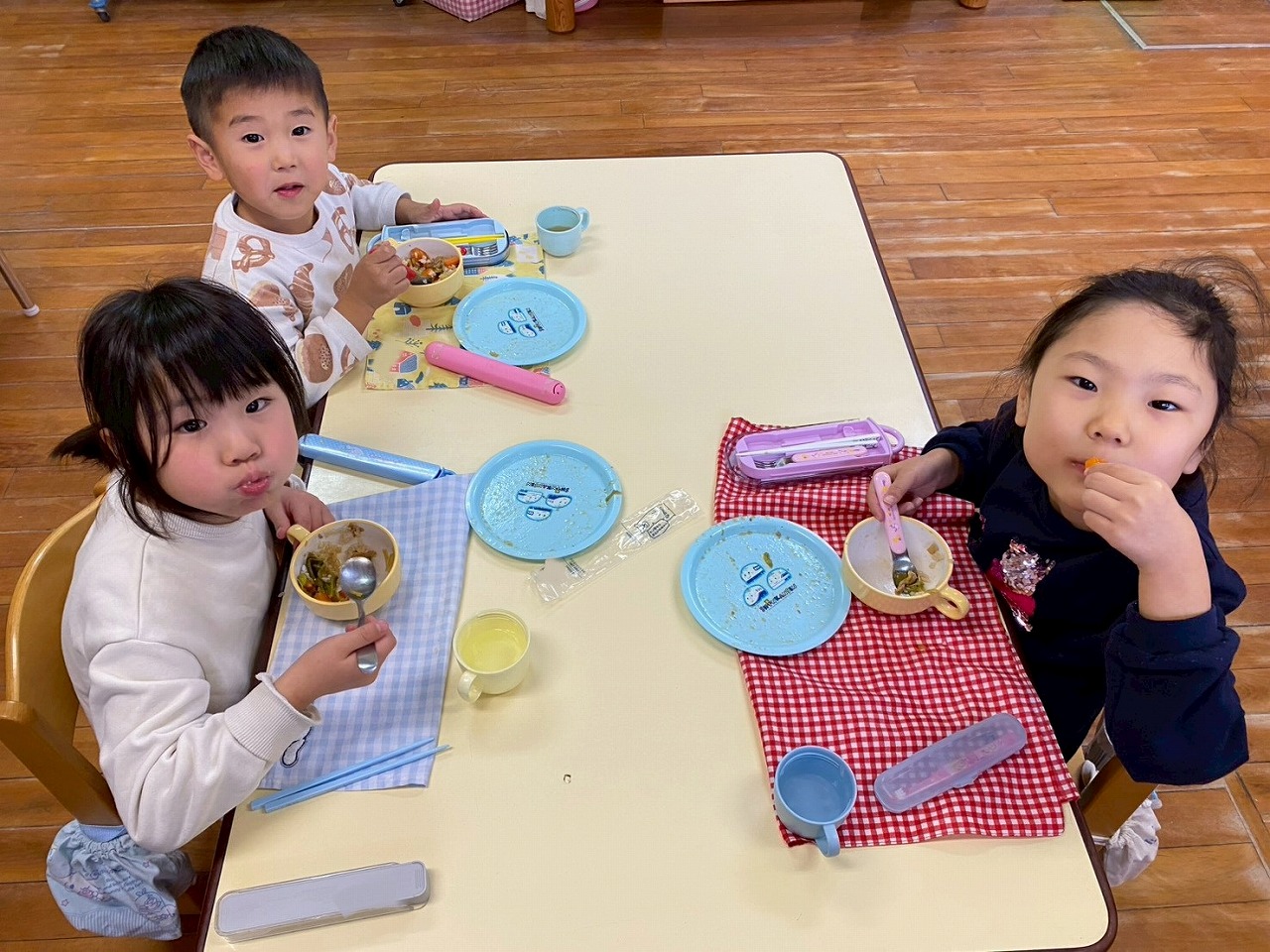 🌾準備が整い、11月20日にお米パーティーを行いました。お米や野菜を洗い、包丁で切って調理をし、いざ実食です😊自分たちで育てたお米と、考えたメニューに大喜びの子どもたち。たくさんおかわりをして、お鍋が空になるまで完食しました💞育てたものを食べる喜びをじっくり感じることができる時間となりました。