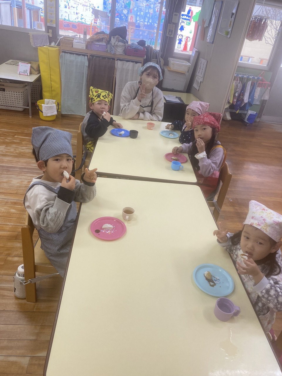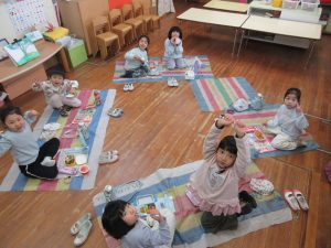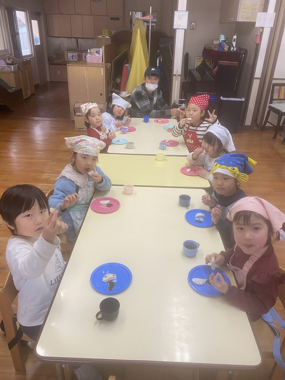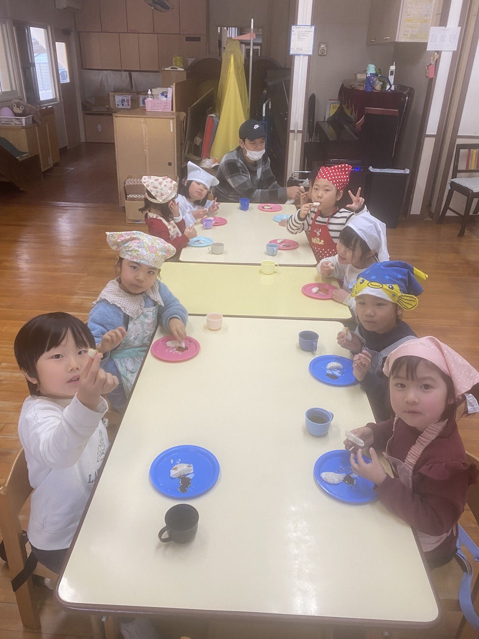 その後、保育室に戻り、たてわりのお弁当の席で美味しくお餅をいただきました😋💚