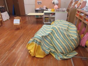 🍀ある日、お友だち同士の会話をきっかけに、絵本『11ぴきのねこ ふくろのなか』のごっこ遊びが始まりました😺お話の中で、11ぴきのねこたちは、ウヒアハという不思議な生き物に出会います。その場面を思い出しながら、子どもたちも登場人物になりきって遊びが広がっていきました💫