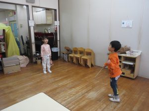 遊びを重ねるうちに、「もうちょっと右だよ〜」「そこでいいよ!