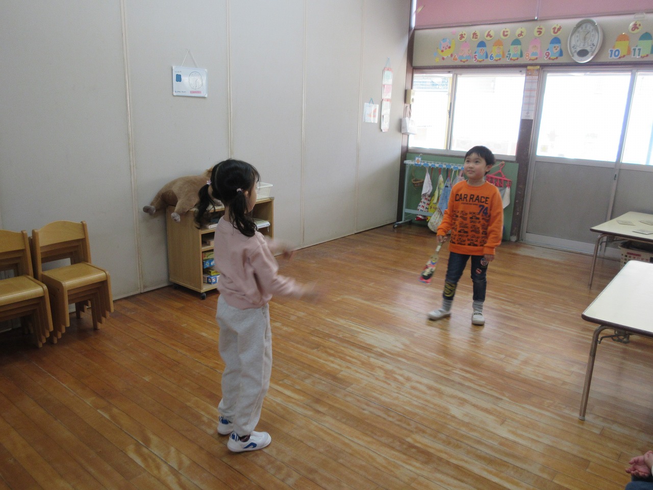 ⭐ほし組では、引き続き羽根つきが人気です!毎日羽根の音がお部屋に響いています。椅子に座って応援しているお客さんもいました😊