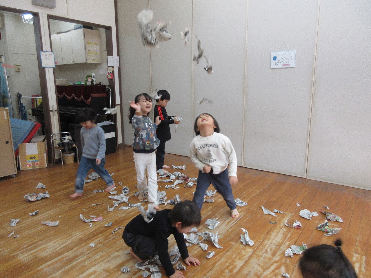 ばなな鬼が楽しかったようで、クラス活動でばなな鬼をした後から、子どもたちは自由遊びの時に必ず「ばなな鬼しよー!」と言って、鬼ごっこ「おおかみさんいまなんじ?」の代わりに、毎日ばなな鬼をするようになりました🍌