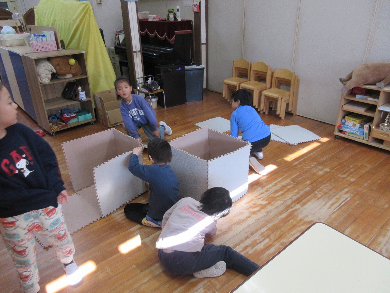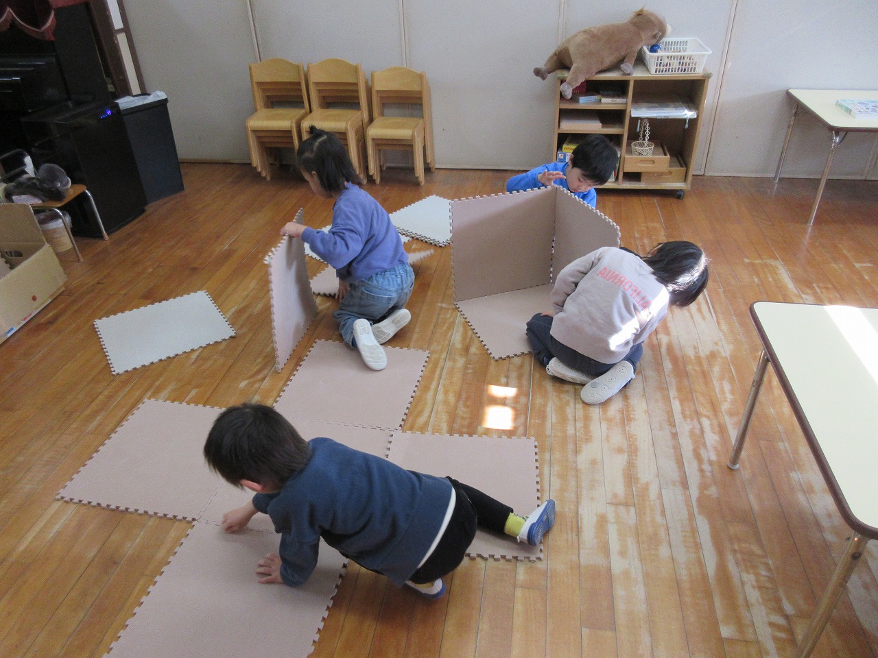 ⭐お部屋のマットを器用に組み立てて、サイコロを作ろうと頑張っていました💪🏼🔥みんなで声を掛け合い、協力して取り組んでいました。