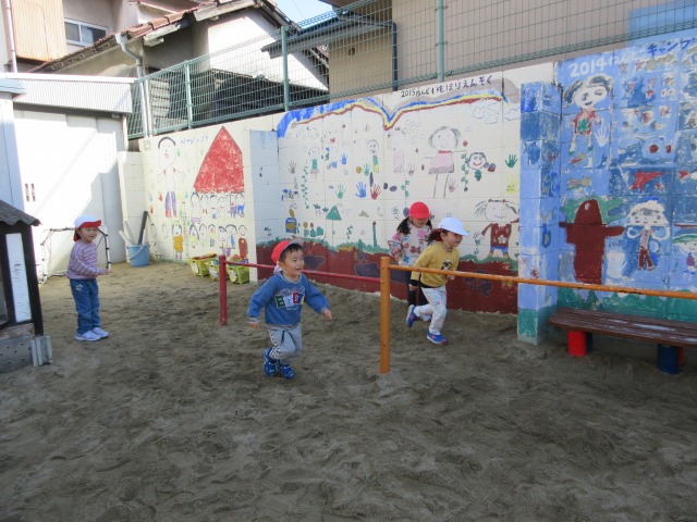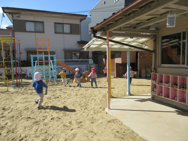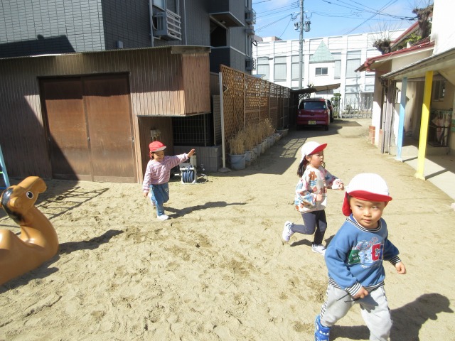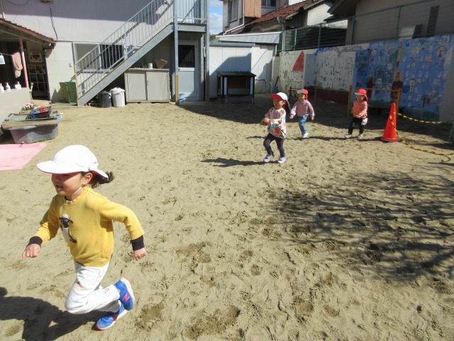 ④保育室でばなな鬼をした後、いざ園庭でばなな鬼スタート🍀