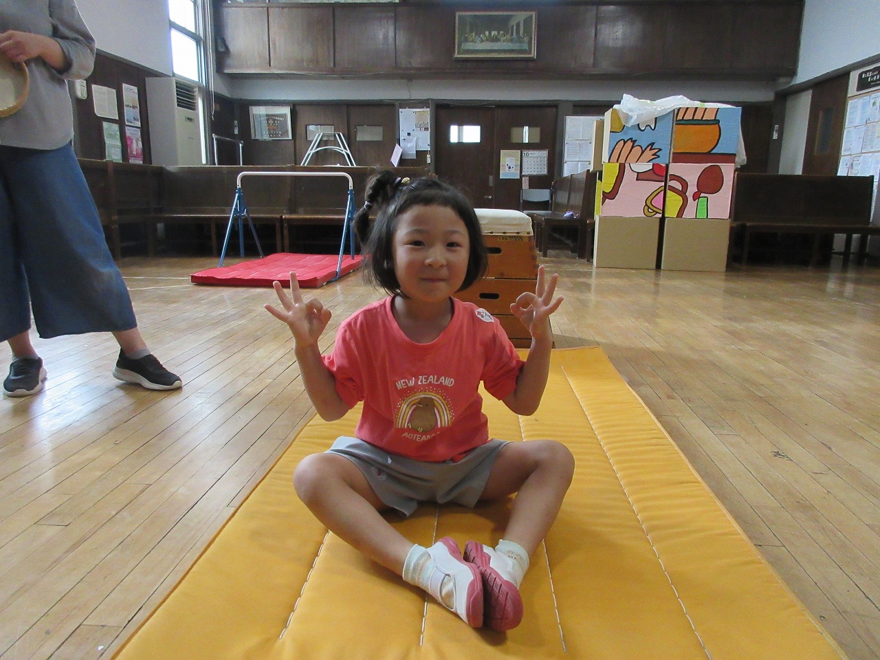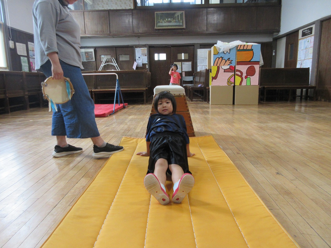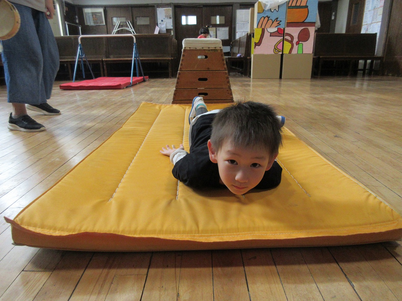 🚩ほし組の体育あそび「レッツゴーほしぐみ」では、鉄棒、平均台、マット、跳び箱からジャンプに挑戦しました。