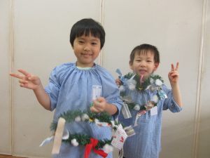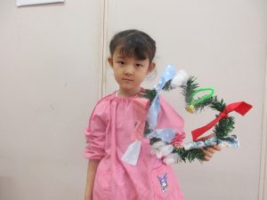 その後、好きなリボンを5本選び、固結びをして飾り付けをしました。