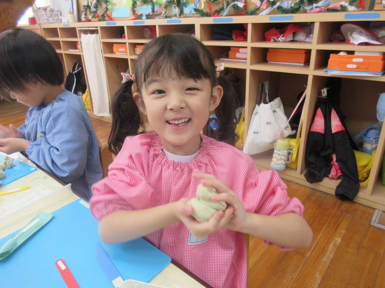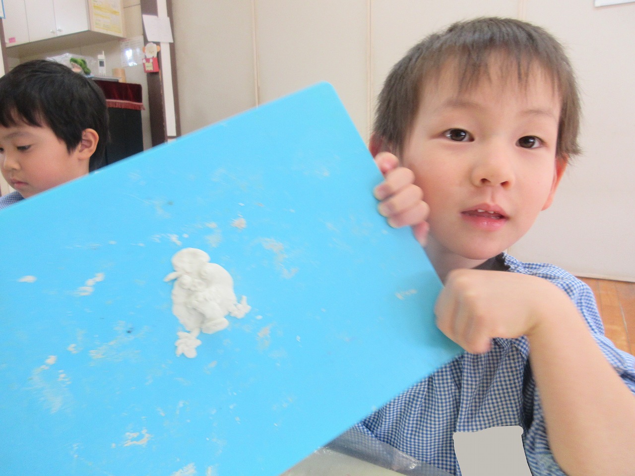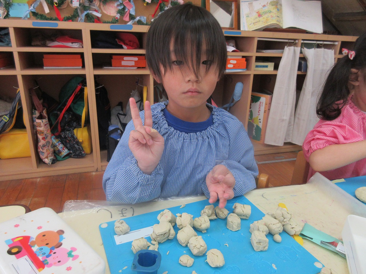 型抜きをしたり、小さくちぎったり、好きなものを作ったり、大きなボールを作ったり・・・