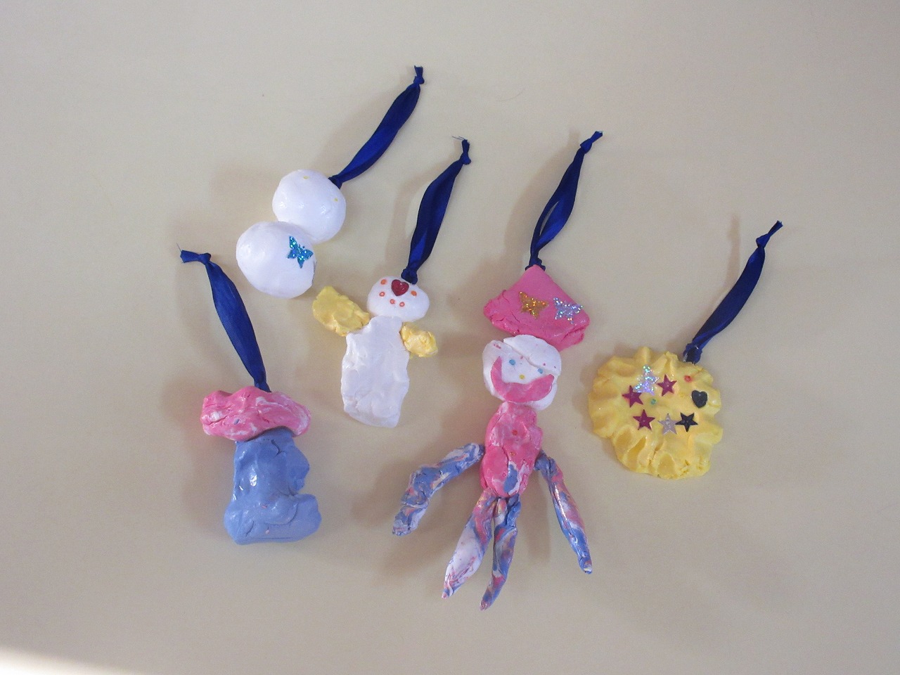 作りたいものをそれぞれ一つ決めて、紙粘土やビーズ等の材料を選んで作りました😊