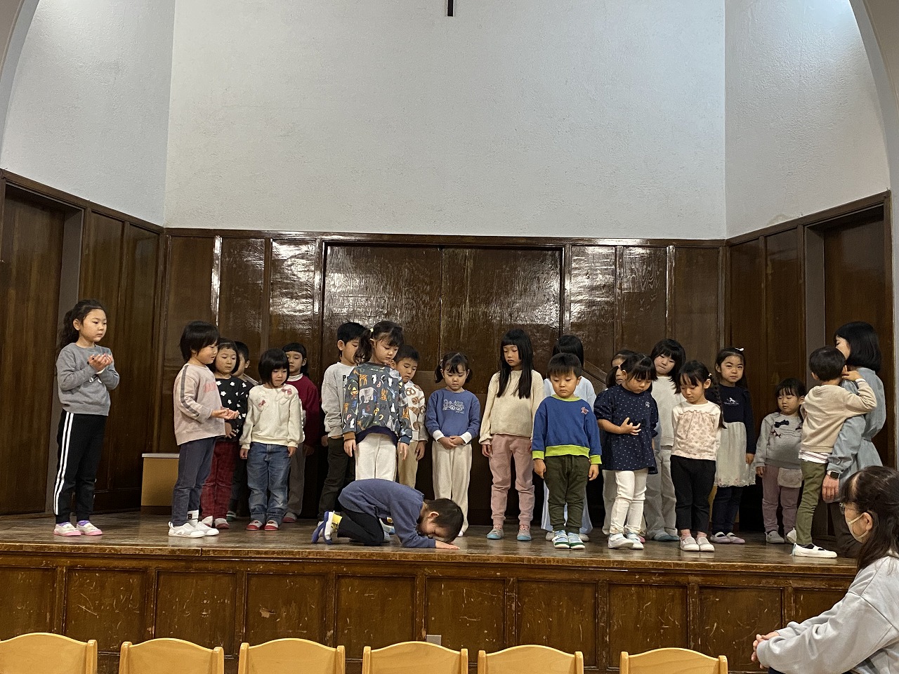 マリアが何人もいたり、年長組が羊をしたり、このページェントごっこならではの姿が見られました🎄こちらがセリフや歌を教えなくても、子ども達はしっかり覚えており、互いに良い影響を与え合いながら日々の練習を積み重ねていたことが分かり、ほっこりしました💞