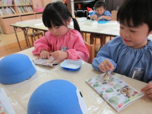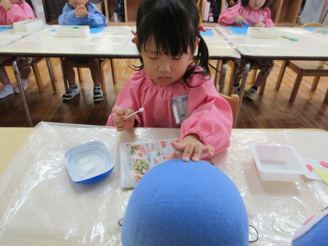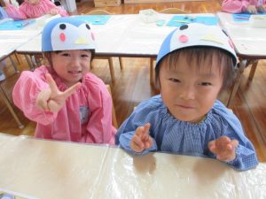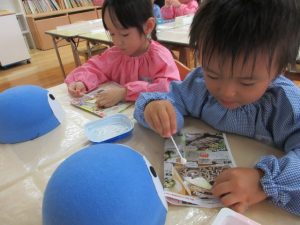 その「ロケットペンギン」を踊る時にかぶる帽子作りを9月に行いました😊