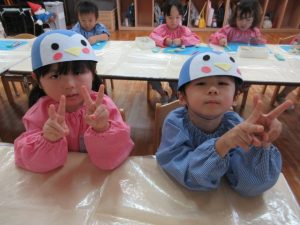 🐧1学期、絵本「ぺんぎんたいそう」(斎藤槙作 福音館書店)でぺんぎんたいそうをして、ぺんぎんに親しんだ子どもたち👦🏻👧🏻