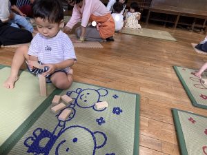 0~1歳児のにとっては積木は、あまりなじみのないおもちゃだと思います。