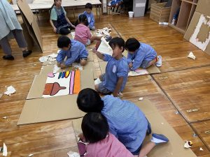 この巨大パズルは、子どもたちの手で作られます👧🏻👦🏻そのため、運動会の練習と並行して、パズル作りも始まります🎨