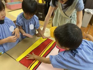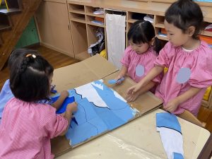 ひがしふくおか幼稚園の運動会での大きな見どころのひとつは、子どもたちがグループのおともだちと協力して行う「力を合わせて巨大パズル」 です🌟