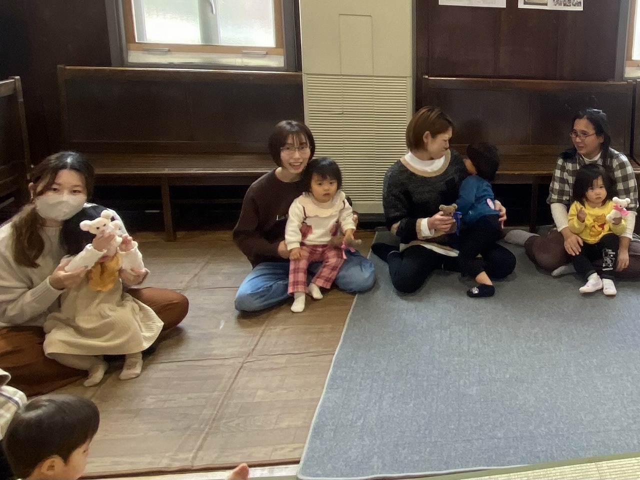 わらべうた遊びとふわふわタオルのくまちゃん制作・・・こひつじクラブ(未就園児0.1歳親子クラス