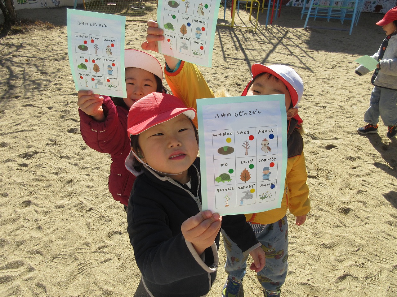 シールを集め、カードが完成しました🌟冬の自然に興味を持ち、お外遊びの時間にもお友だちと冬ならではの自然を探す姿も見られます😊