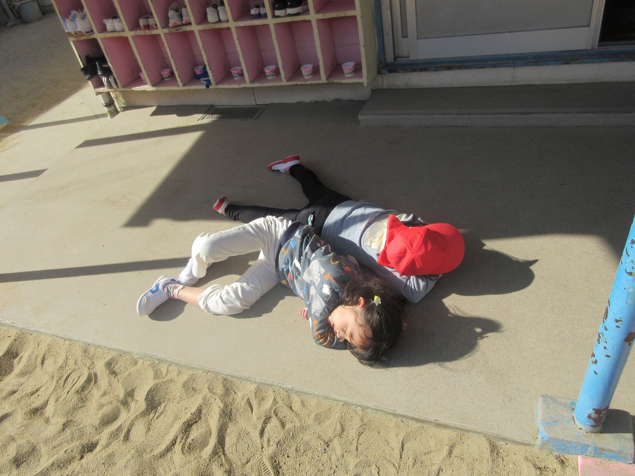 ⭐靴箱の前で日向ぼっこをしていたお友だち👧☀