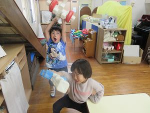 お部屋遊びでは、毎日登場する大きなブロック!