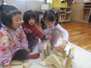 ⭐積み木でお城を作り、チェーリングで飾り付けをしました🏰💫