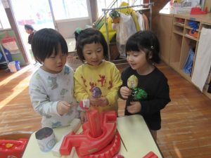 型抜きをしたり、小さくちぎったり、好きなものを作ったり、大きなボールを作ったり・・・