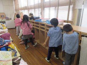 📸 いつもありがとうの気持ちを込めて、保育室の雑巾がけを行いました。ロッカーと床がピカピカになり、「誰か通ったらピカピカで喜ぶんじゃない?😊」「最後の最後にスッキリした~✨」と、満足そうな子どもたちでした。