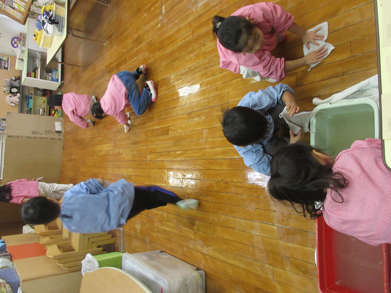 雑巾がけ競争をしたり、先生の後を追いかけて拭き掃除をするのを楽しんでいました🌟