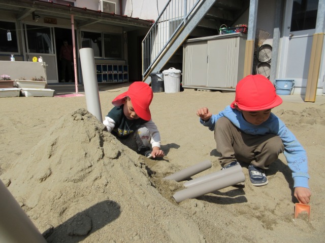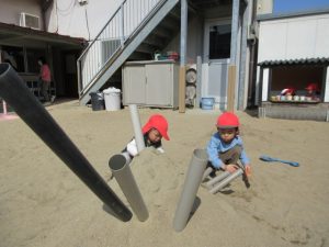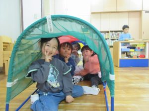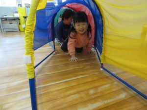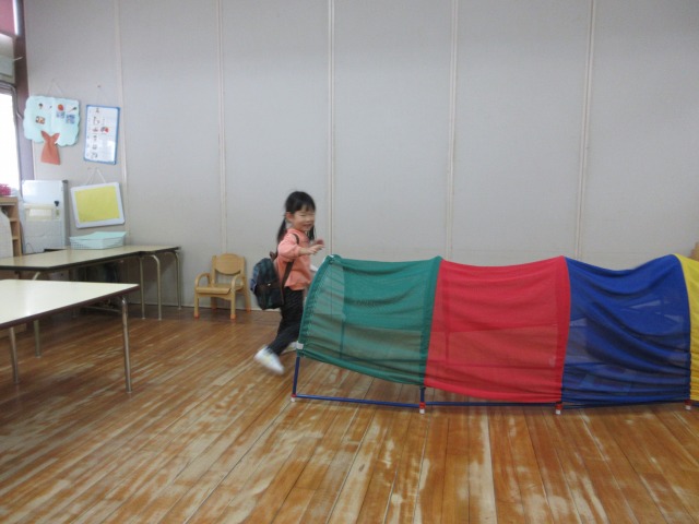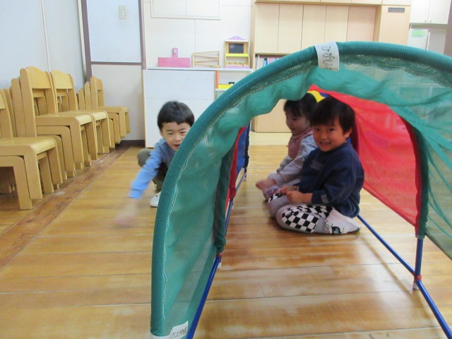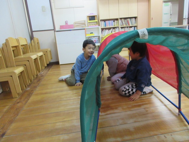 ❤クラス活動で遊んだトンネルを、自由遊びの時にも遊びました😊