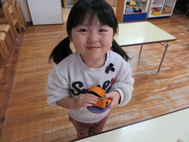 完成したマフラーはお家に持ち帰り、登園時に嬉しそうに巻いてきたお友だちもいました。