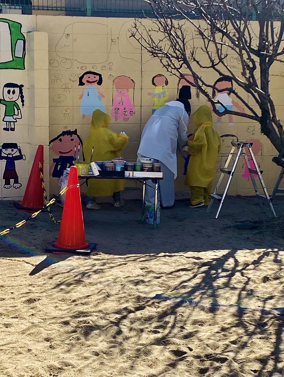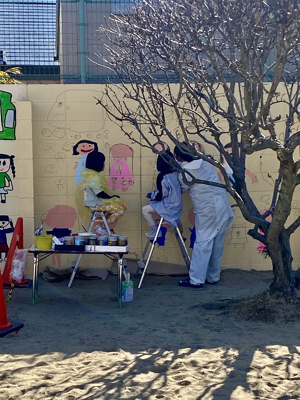 卒園の記念制作として、園庭の壁に絵を描きました⭐