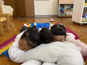 11月9日(日)に幼児祝福礼拝を行いました✨園長先生から、頭に手を添えて “これからも大きく育ちますように” と一人ずつお祈りしてもらいました。その後、園長先生役と子ども役を交代しながらごっこ遊びを楽しんでいました。これからも、子どもたち一人ひとりの歩みを大切に見守っていけたらと思います🌱